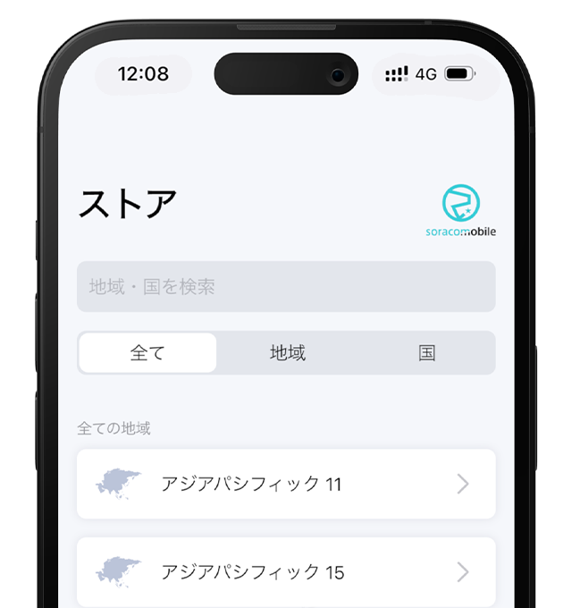 アプリ内のStoreから地域とeSIMプランを選びます。